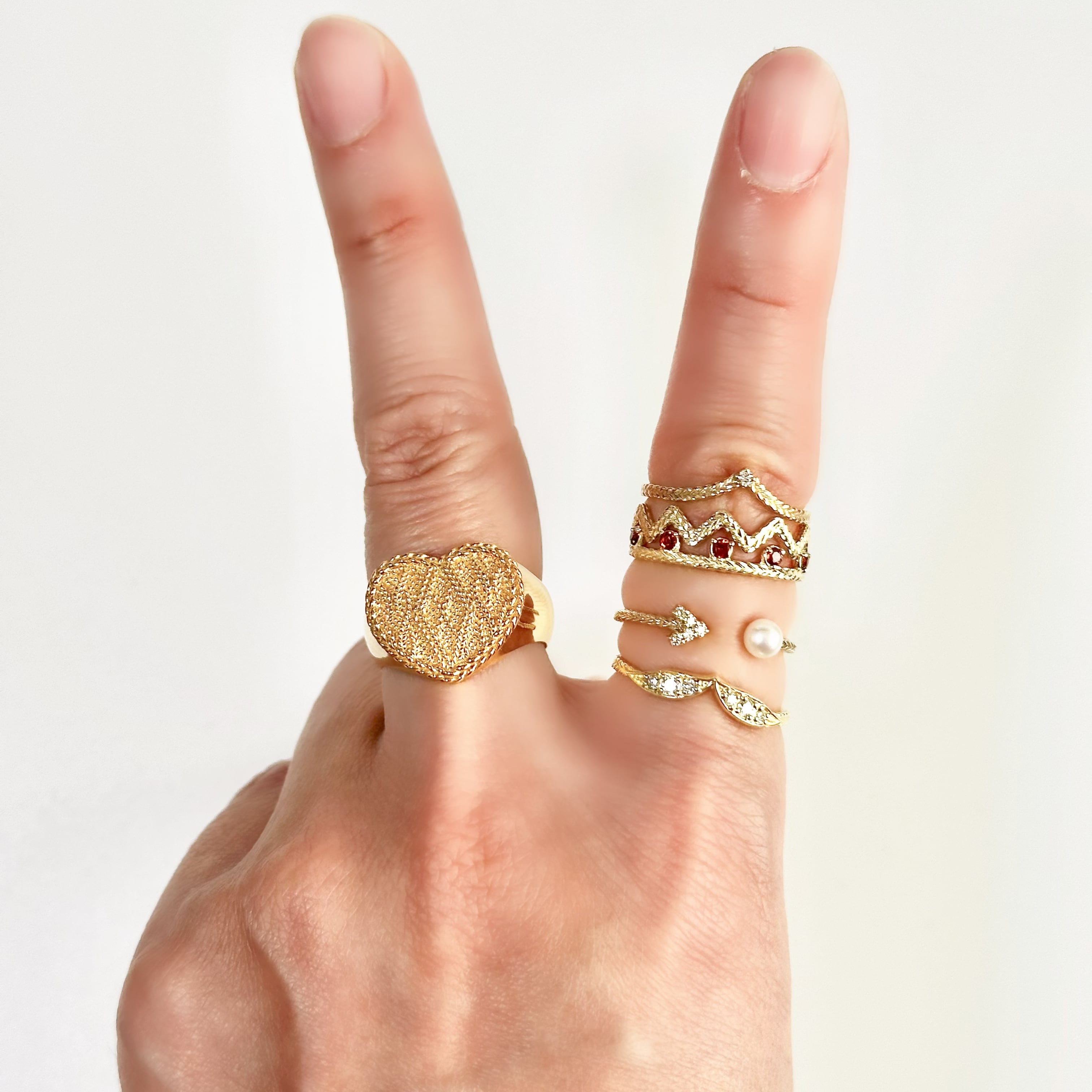 複数のリングを重ねる事で、「顔」を作り出す遊び心あふれるユニークなリングのシリーズ。指先で表現される小さなアートは身に付ける人の個性や感情を自由に描き出します。各リングは単体でも魅力的ですが、シンプルな幾何学的デザインからユニークな顔モチーフなで、組合わせ次第で多彩なスタイルを楽しめます。