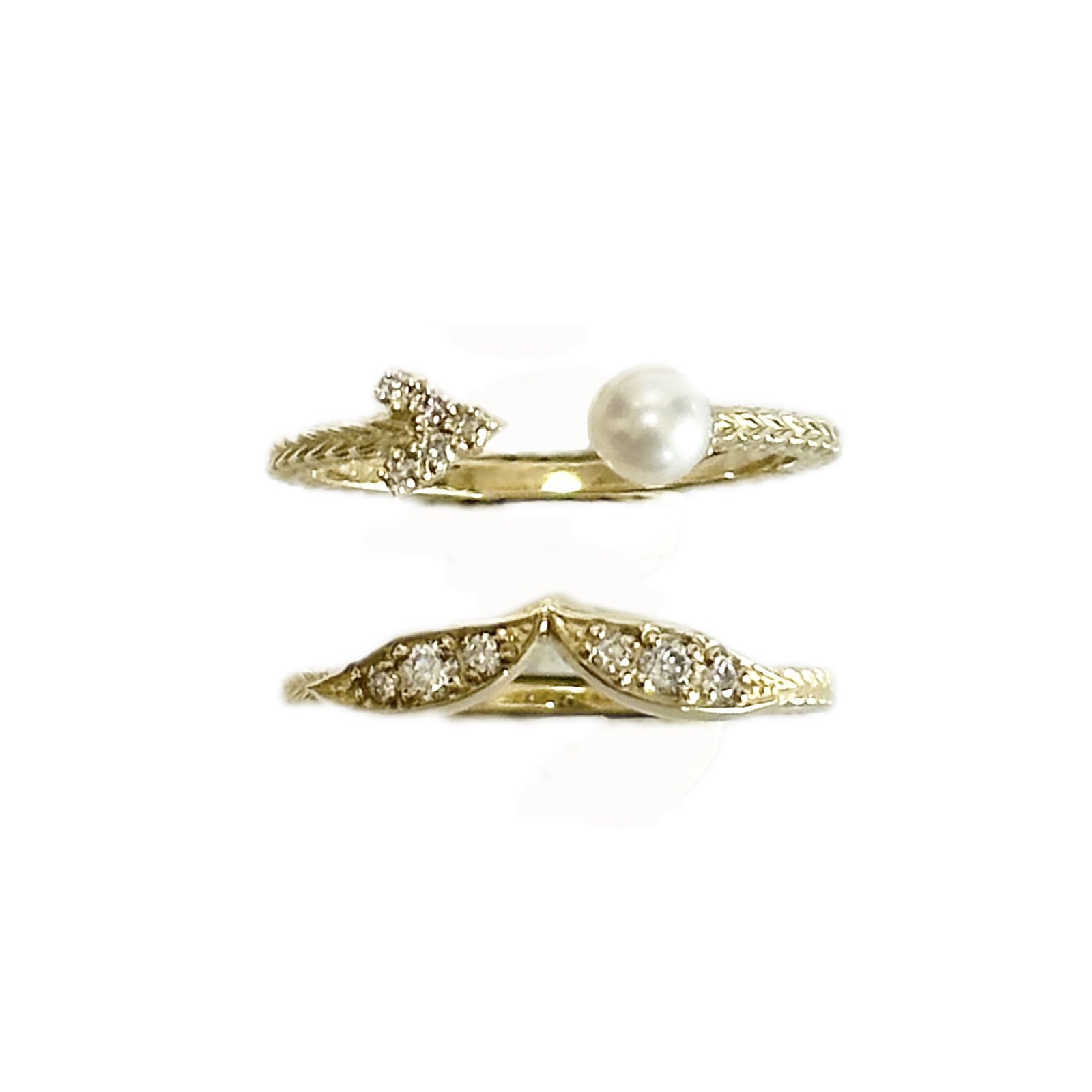 K10 DIAMOND PEARL ARROW RINGとK10 DIAMOND LEAF RINGのセット商品です。