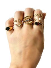 複数のリングを重ねる事で、「顔」を作り出す遊び心あふれるユニークなリングのシリーズ。指先で表現される小さなアートは身に付ける人の個性や感情を自由に描き出します。各リングは単体でも魅力的ですが、シンプルな幾何学的デザインからユニークな顔モチーフなで、組合わせ次第で多彩なスタイルを楽しめます。