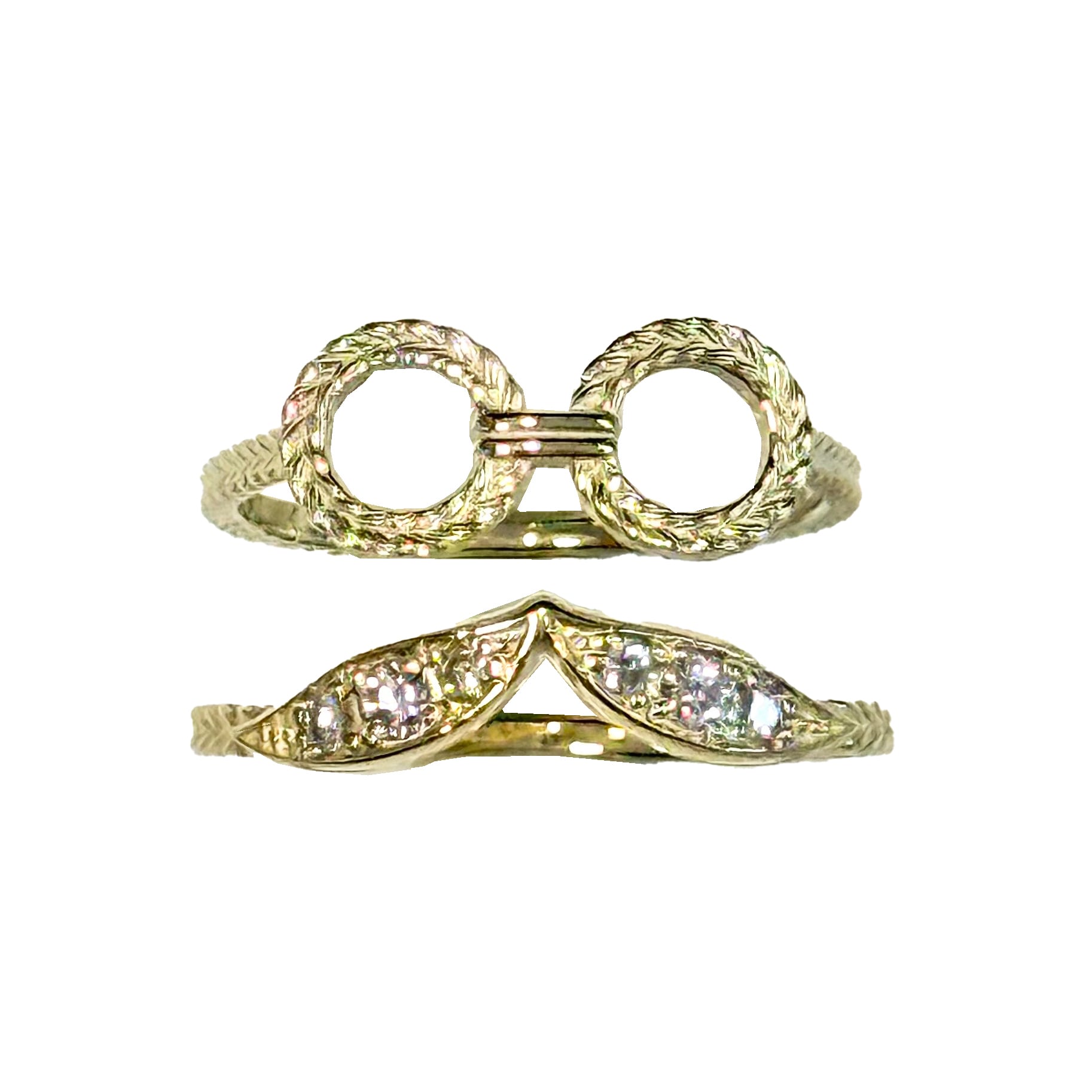 複数のリングを重ねる事で、「顔」を作り出す遊び心あふれるユニークなリングのシリーズ。指先で表現される小さなアートは身に付ける人の個性や感情を自由に描き出します。各リングは単体でも魅力的ですが、シンプルな幾何学的デザインからユニークな顔モチーフなで、組合わせ次第で多彩なスタイルを楽しめます。